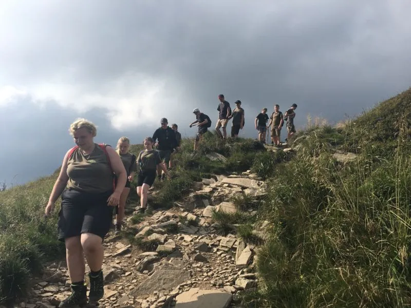 Kadra miała początkowo obawy czy wszyscy dadzą sobie radę – kilkoro harcerzy było w wieku 9-10 lat – jednak obawy te okazały się bezpodstawne. Wysiłek i zmęczenie zostały nagrodzone niesamowitymi panoramami gór i różnorodną przyrodą a kanapki robione z zabranych produktów, smakowały jak najlepsze dania u mamy J Przerywnikiem przeznaczonym na regenerację dla wszystkich, była przejażdżka Bieszczadzką Kolejką Leśną i degustowanie regionalnych serów, ciast i chałwy na końcowym przystanku. Wielkim turystycznym wyczynem była wędrówka całego obozu po trasie: Wołosate - Rozsypaniec - Halicz - Tarnica - Ustrzyki Górne. W sumie, blisko 27 kilometrów marszu. Ufff wyczerpująca to była wędrówka…