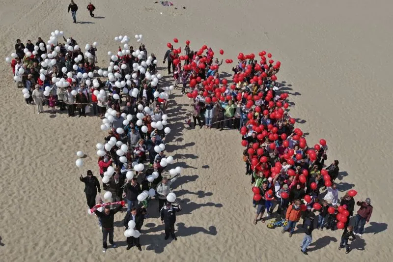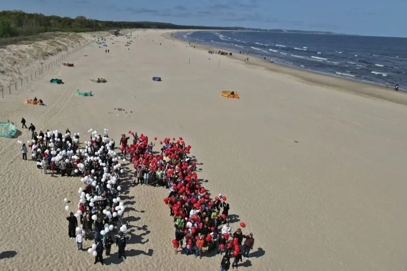 W samo południe ponad 200 osób z białymi i czerwonymi balonami w rękach ustawiło się na plaży w kształcie liczby 44. W ten sposób mieszkańcy i turyści uczcili Dzień Flagi Narodowej.