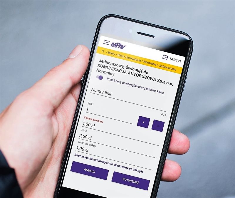 mPay to darmowa aplikacja na telefony komórkowe, z której można korzystać w świnoujskich autobusach od końca lipca 2018 r. Rozwiązanie ułatwia dokonywanie wielu codziennych płatności życia codziennego, pozwalając m.in. kupować bilety komunikacji miejskiej bez stania w kolejkach czy szukania otwartego punktu sprzedaży. W aplikacji na telefonie są one dostępne przez całą dobę. Dodatkowo, dzięki trwającej do końca roku wspólnej akcji mPay i Mastercard, wybrane bilety można kupować za 1 zł.