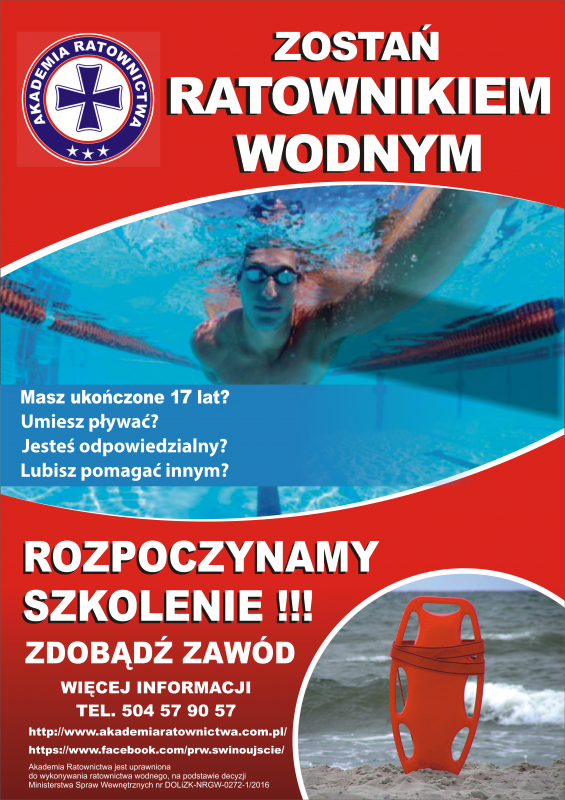 Akademia Ratownictwa zaprasza na 63 godzinne Szkolenie Ratownika Wodnego w Świnoujściu, które jest zgodne z Rozporządzeniem Ministra Spraw Wewnętrznych z dnia 21 czerwca 2012 roku w sprawie szkoleń w ratownictwie wodnym. Jeśli ukończyłeś 17 lat, umiesz pływać, chcesz zdobyć swój pierwszy zawód w życiu, TO SZKOLENIE JEST DLA CIEBIE!!!
