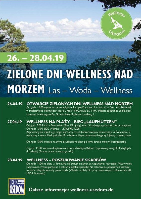 Wyjątkowe warunki klimatyczne na wyspie Uznam istotnie wpływają na zdrowie i dobre samopoczucie. Łagodny nadmorski klimat oraz licznie porastające wybrzeże Uznamu lasy mają działanie kojące i są jedyne w swoim rodzaju. Z okazji „Zielonych Dni Wellness na Morzem” w dniach od 26.04 do 28.04.2019 roku na Uznamie zaprezentowane zostanie właśnie to niezwykłe połączenie Lasu, Wody i Wellness.