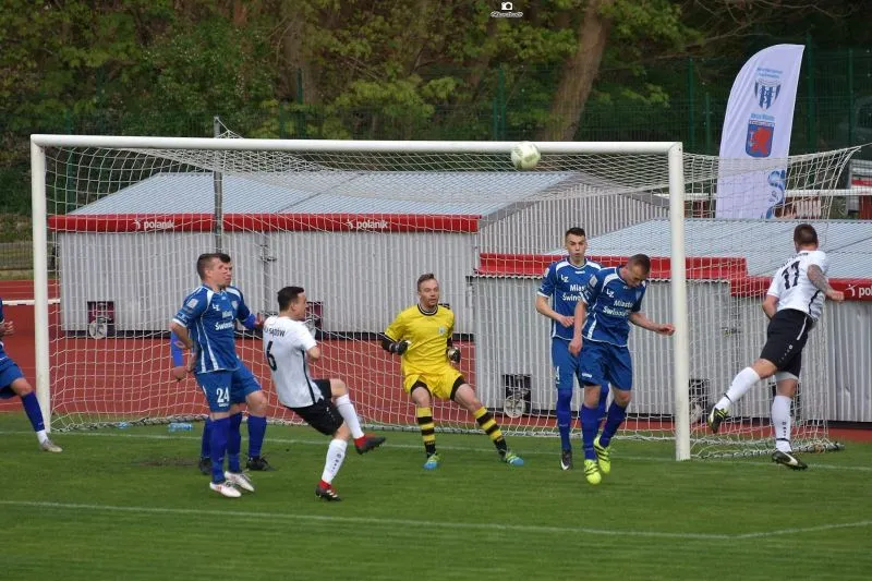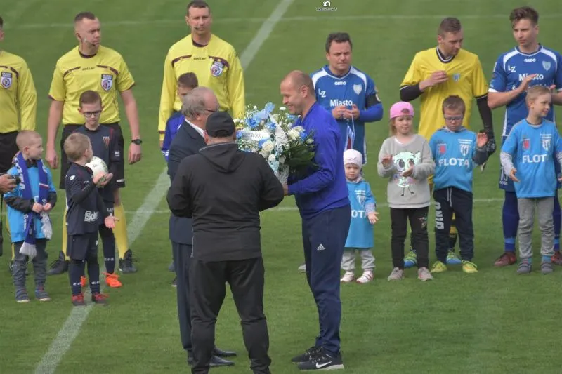 Najbardziej kuriozalna sytuacja miała miejsce w 14 minucie, gdy Bełtowski wyszedł przed pole karne, a Mosiądz wykonał strzał moździerzowy, tzn. spróbował przelobować bramkarza, tymczasem piłka na 5. metrze odbiła się od ziemi i wyszła ponad poprzeczkę. W 36 minucie Stasiak wykorzystał podanie Rogowskiego z rogu i głową zdobył dla Floty prowadzenie. W 79 minucie Wójcik wykorzystał sam na sam na sam z Zimeckim i wyrównał. Obie drużyny mogą czuć niedosyt, ale i obie nie mogą narzekać na brak szczęścia. Ekipa gości podkreśla bardzo dobre sędziowanie.