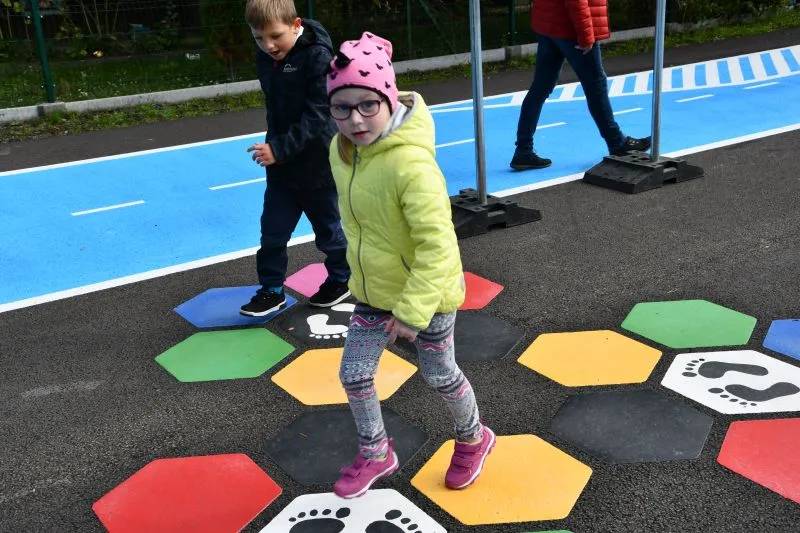 Oprócz jezdni, skrzyżowań, przejść dla pieszych, znaków drogowych znajdują się tam również plansze do gier zręcznościowych (m.in. twister).
