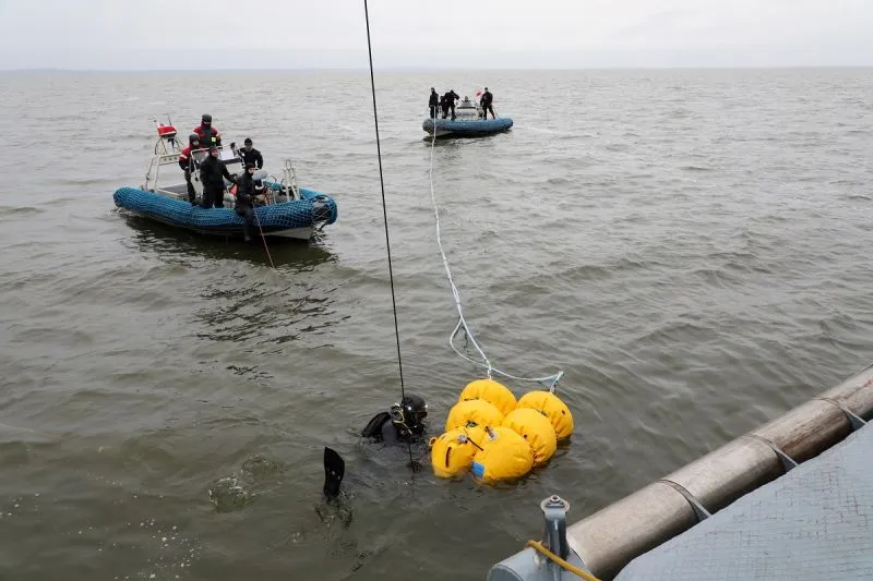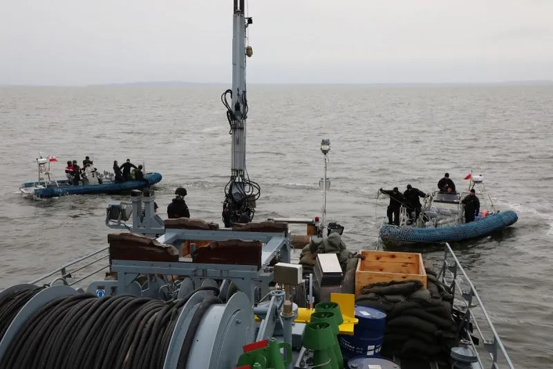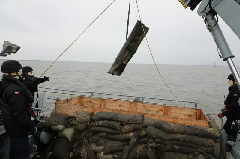 Dziś przed godziną 12.00 załoga trałowca ORP Gopło z 13. Dywizjonu Trałowców oraz żołnierze i Grupa Nurków Minerów z 12. Dywizjonu Trałowców bezpiecznie wywiozła na poligon morski dwa niebezpieczne obiekty, które zostały znalezione podczas pogłębiania toru wodnego Szczecin - Świnoujście. To już trzecia taka akcja i zapewne nie ostatnia. Podziękowania dla policjantów, funkcjonariuszy Straży Granicznej, strażaków oraz strażników miejskich, którzy na lądzie i wodzie czuwali nad bezpieczeństwem podczas akcji.