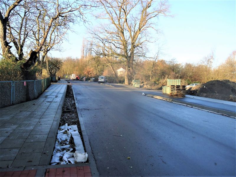 Do zakończenia zostało przede wszystkim wybrukowanie sięgacza od głównej drogi w stronę torów kolejowych, wypełnienie żwirem szczelin pomiędzy kostką, z której wybudowano jezdnię oraz stref oddzielających jezdnie od chodnika.