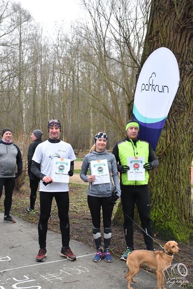 Dwie setki i jedna pięćdziesiątka to nie jest bynajmniej menu drink baru, ale ilość odbytych biegów w ramach parkrun. Osiągnięciami takimi mogą od dzisiaj pochwalić się Patrycja APERLIŃSKA (100 biegów), Robert DERDA (100 biegów) i Jarosław GOŁĄBIOWSKI (50 biegów), co zostało też na dzisiejszym #190 parkrun Świnoujście potwierdzone stosownymi dyplomami, które tuż przed biegiem wręczyła laureatom koordynator dzisiejszego spotkania.