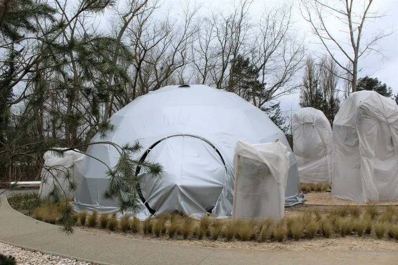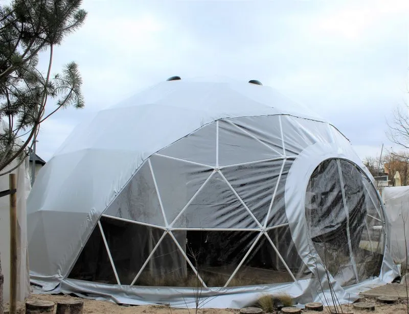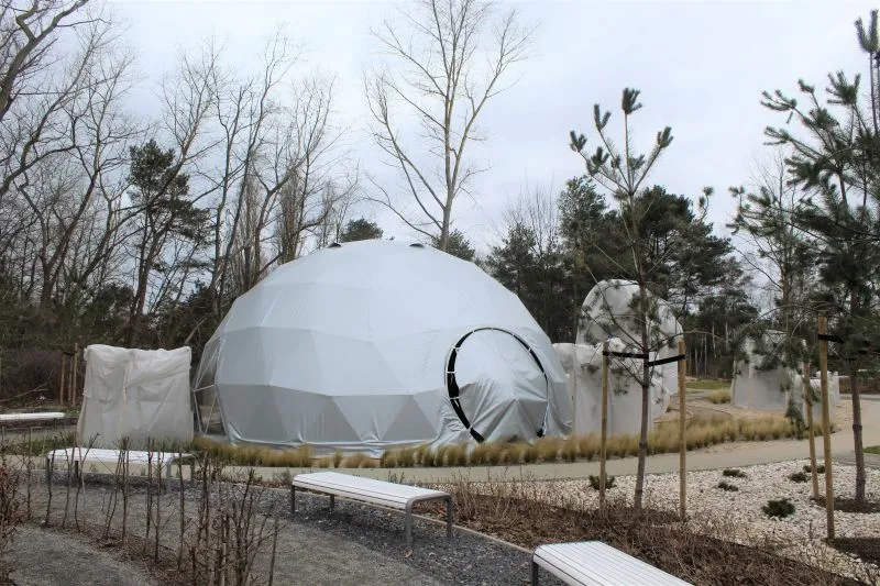 Pierwsza kopuła już została zamontowana. Ma średnicę 9 metrów, wysokość 4,5 metrów. Po dwóch stronach namiotów znajdują się wejścia. Konstrukcja została pokryta specjalną membraną PVC.