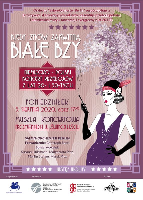 W poniedziałkowy wieczór przeniesiemy się w lata 20 i 30-te ubiegłego stulecia. Wszystko za sprawą Salon-Orchester Berlin. Wyjątkowy koncert odbędzie się 3 sierpnia w Muszli Koncertowej przy Promenadzie. Początek o godz. 17.30. Wstęp wolny, na terenie imprezy obowiązuje zaostrzony reżim sanitarny.