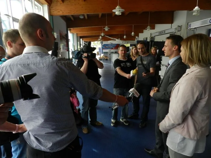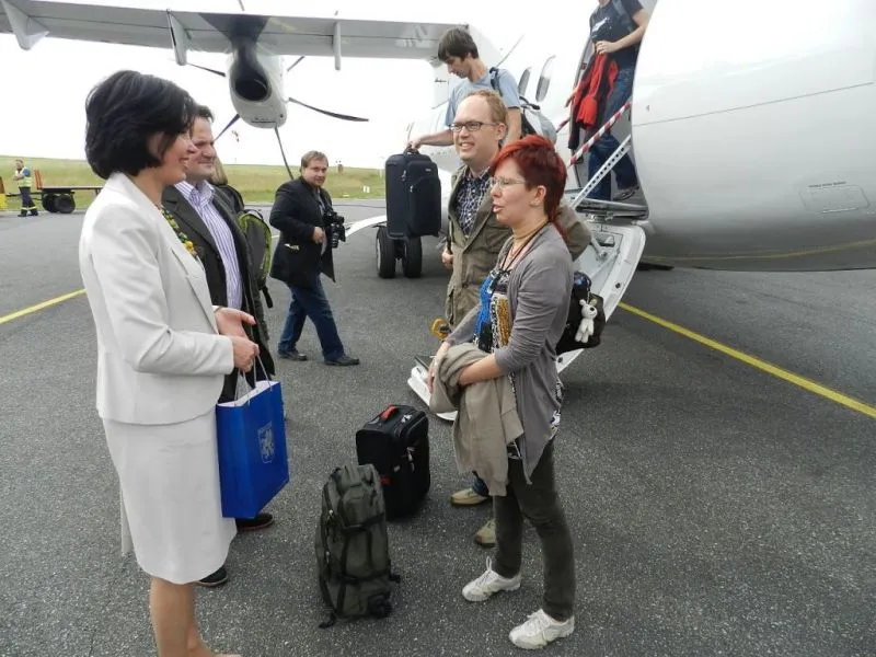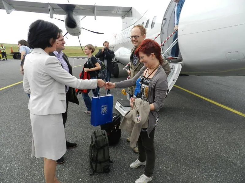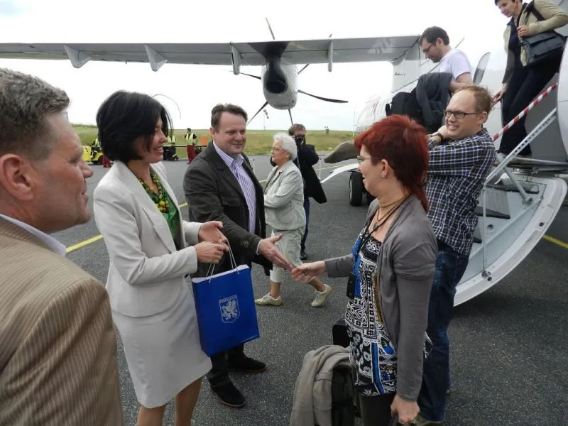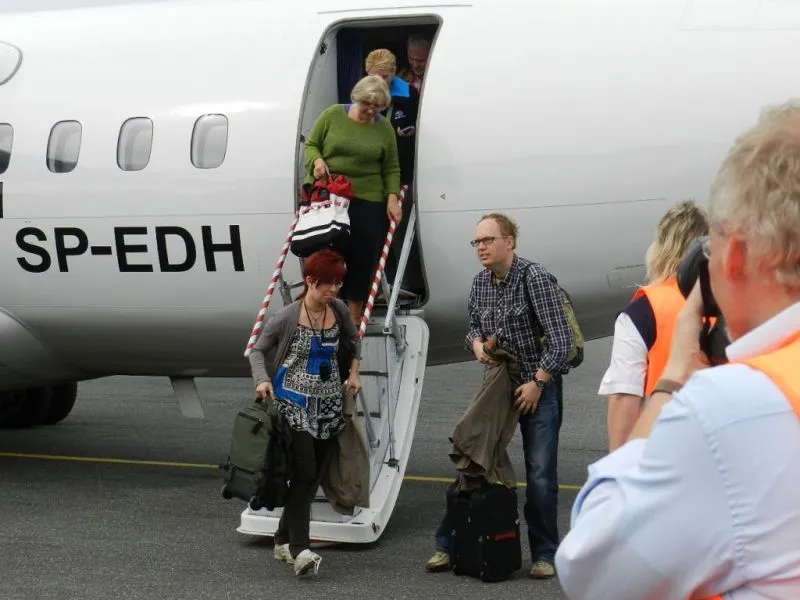 Sylwia Kucharska i Jacek Wąż z Krakowa byli pierwszymi pasażerami, którzy wysiedli z samolotu Eurolotu na lotnisku w Heringsdorfie. Oboje powiedzieli, że wybrali nasze miasto właśnie ze względu na niedrogie i szybkie połączenie lotnicze.