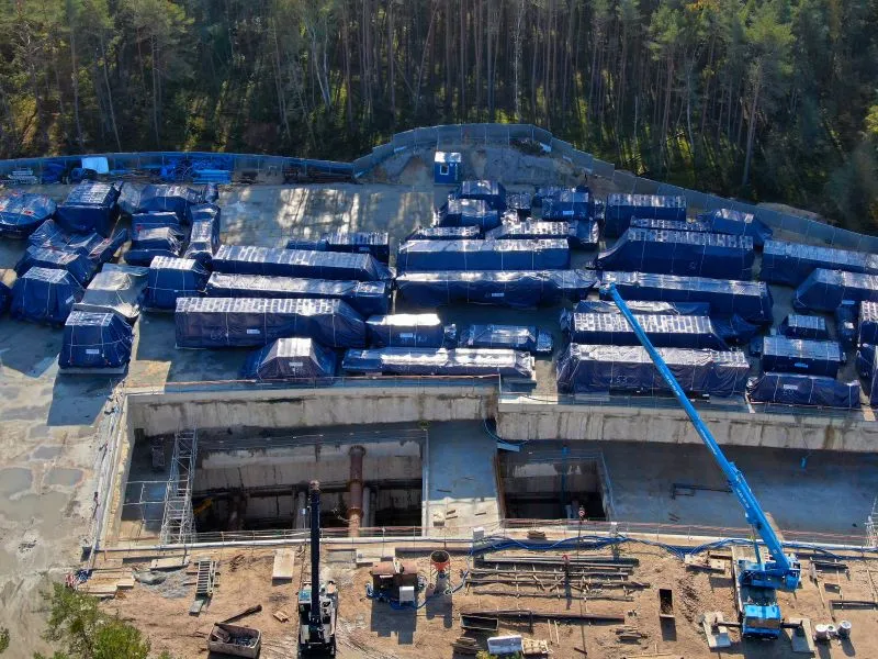 Intensywne prace są też prowadzone w rejonie rampy dojazdowej do tunelu. Poza tym, trwa montaż zakładu STP (Slurry Treatment Plant). Gdy maszyna rozpocznie pracę, to właśnie tam płuczka wiertnicza będzie oczyszczana i oddzielana od urobku.