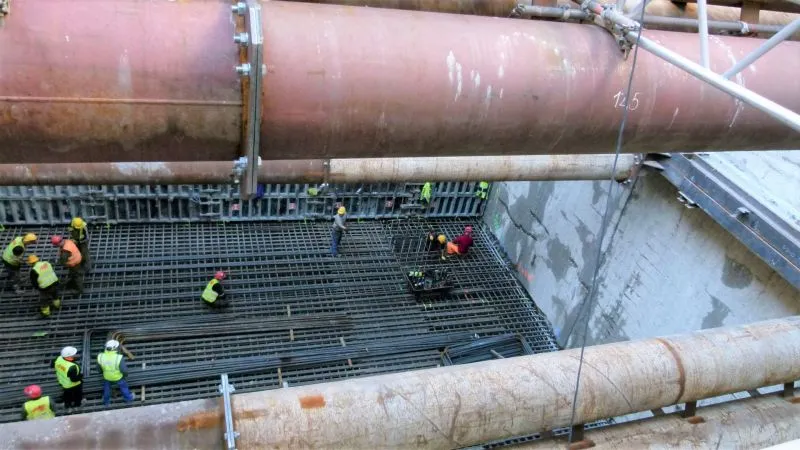 129 elementów maszyny TBM, która statkiem przypłynęła do Świnoujścia, są już przewiezione w rejon szybu startowego. Do czasu jej złożenia komora startowa musi być w pełni przygotowana. Obecnie zakończono tam wykop i trwa odwadnianie. Betonowano też podłoże pod zbrojenie płyty dennej, wykonywano izolację płyty dennej i zamków oraz zbrojono i betonowano płytę denną.