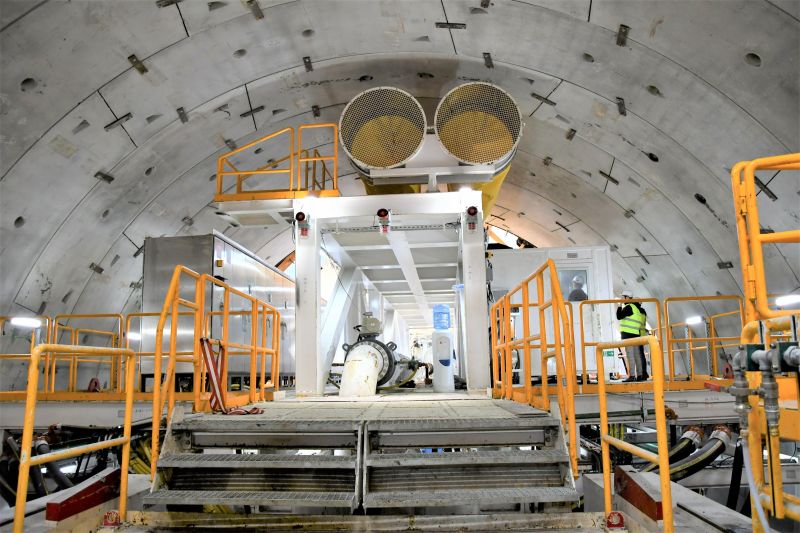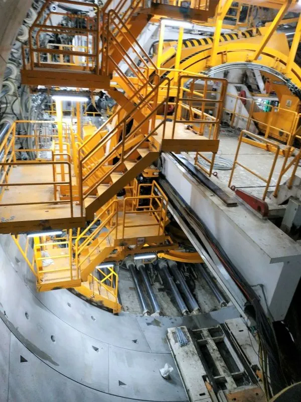 Jednocześnie ze specjalnych pierścieni układa za sobą kolejne elementy obudowy tunelu, który w przekroju kołowym i szerokości wewnątrz ma 12 metrów. Elementy pierścieni są produkowane w zakładzie prefabrykacji na terenie budowy.