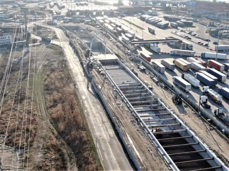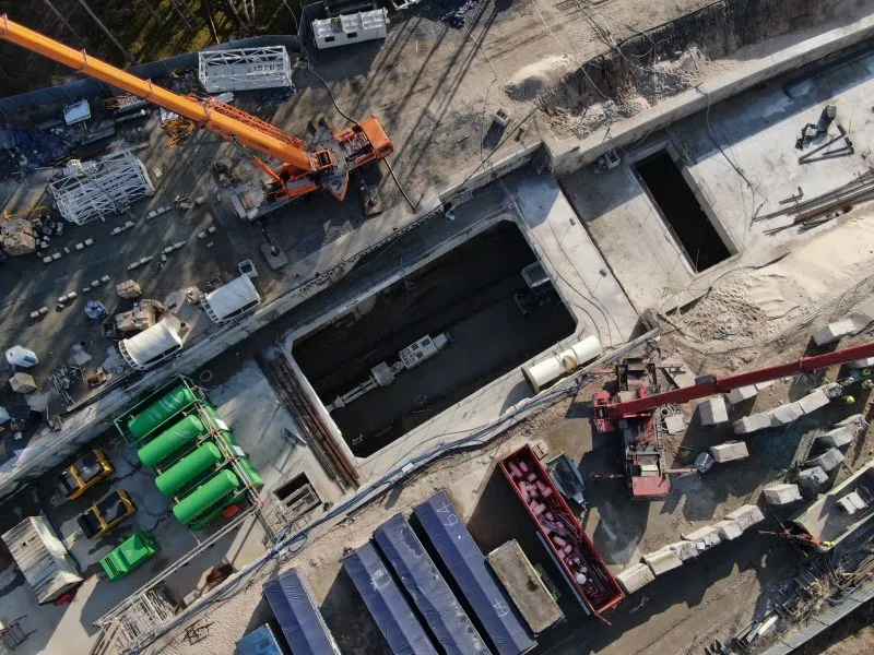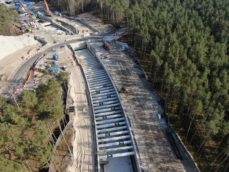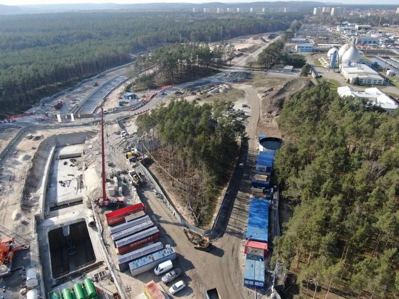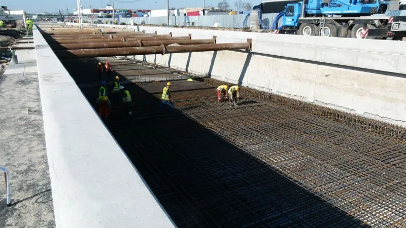 W samej komorze startowej - na styku segmentów S11 i S12 - odbywa się demontaż ściany szczelinowej. W rejonie rampy i tunelu wykonywanego metodą stropową, czyli na odcinku od pierwszego segmentu do jedenastego prowadzone są prace zabezpieczające. Z wnętrza rampy sukcesywnie odpompowywana jest woda. Ściany szczelinowe są uszczelniane. W ubiegłym tygodniu betonowano płytę denną S10. Trwało zbrojenie, deskowanie i betonowanie ciosów podłożyskowych w rejonie budowanego wiaduktu w ciągu ulicy Karsiborskiej.