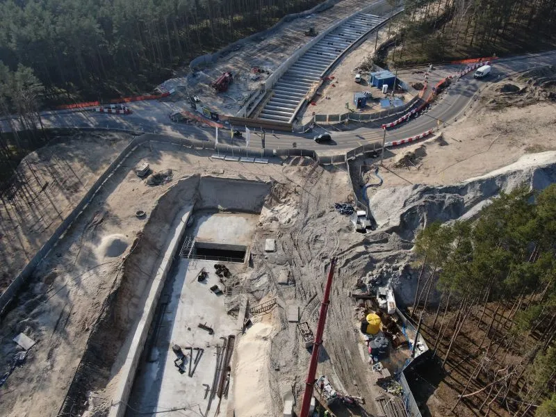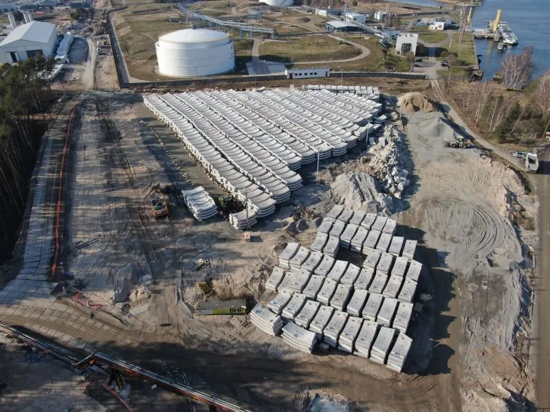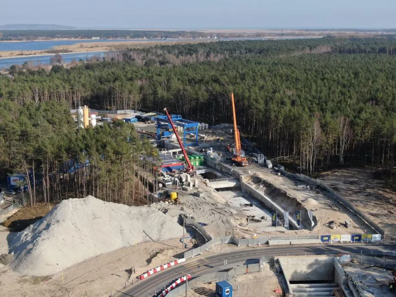Po drugiej stronie, czyli na wyspie Wolin, większość prac koncentruje się w rejonie komory odbiorczej oraz rampy tunelu. W segmentach od R1 do R16 prowadzone są roboty ziemne i konstrukcyjne.