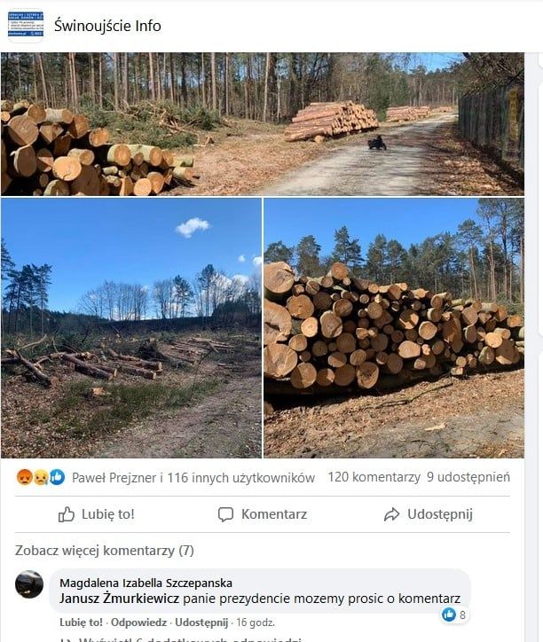Jak zapewnia Zbigniew Pawłowski z Leśnictwa Świnoujście, trwająca tam wycinka drzew jest wpisana w gospodarkę leśną i jest zgodna z planem zarządzania lasem. Jak mówi, wszystkie prace z zakresu gospodarki leśnej realizowane przez nadleśnictwo wykonywane są w oparciu o zatwierdzony przez ministra właściwego do spraw środowiska, Plan Urządzania Lasu.