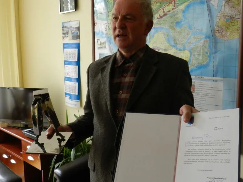 - Taką oto dostałem statuetkę – powiedział z dumą znany świnoujski szantman Jerzy „Poręba” Porębski wchodząc na spotkanie z prezydentem miasta Januszem Żmurkiewiczem.