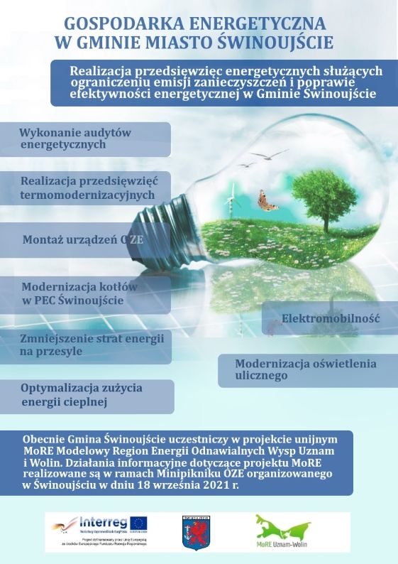 Projekt MoRE Uznam Wolin jest realizowany w części polskiej i niemieckiej wysp Uznam i Wolin. Dotyczy zagadnień energetycznych i planistycznych w ujęciu transgranicznym z uwzględnieniem działań świadomościowych, wymagających współpracy polsko-niemieckiego grona interesariuszy tj.: mieszkańców, szkół, jednostek samorządowych, instytucji naukowych, branży turystycznej, usług i gospodarki komunalnej, mobilności oraz jednostek planistycznych, właścicieli i dysponentów infrastruktury energetycznej. Projekt zmierza do zainicjowania przemian w obszarze energetyki i ekologii Wysp Uznam i Wolin, a jego docelowym, długoterminowym beneficjentem będą mieszkańcy wysp oraz terenów sąsiednich.