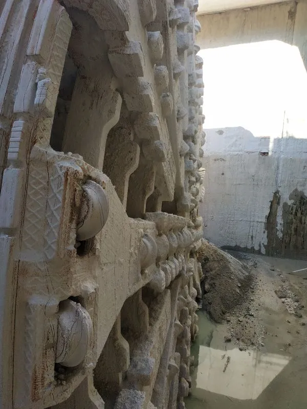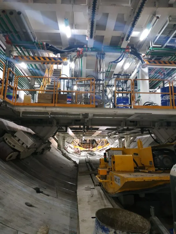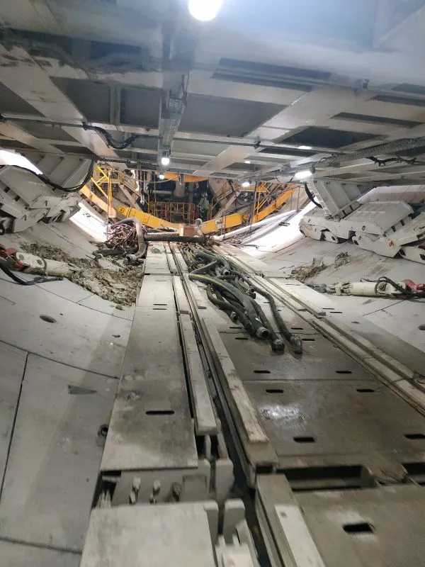 Na wyspie Wolin w komorze odbiorczej kontynuowane są prace przygotowawcze związane z demontażem maszyny TBM. Trwa czyszczenie tarczy i montaż uchwytów demontażowych. Czyszczona jest też sama komora.