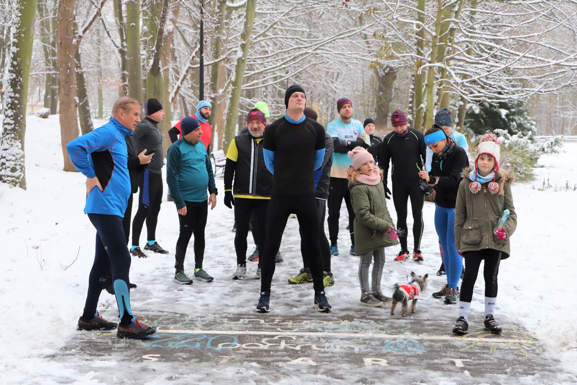 Kolejny sobotni poranek rozpoczęło 21 śmiałków, którym niestraszna była zimowa aura. Biegnąc i idąc, podziwiali śnieżne krajobrazy Parku Zdrojowego. Najszybciej po białym puchu przemknął Paweł Kaleta.
