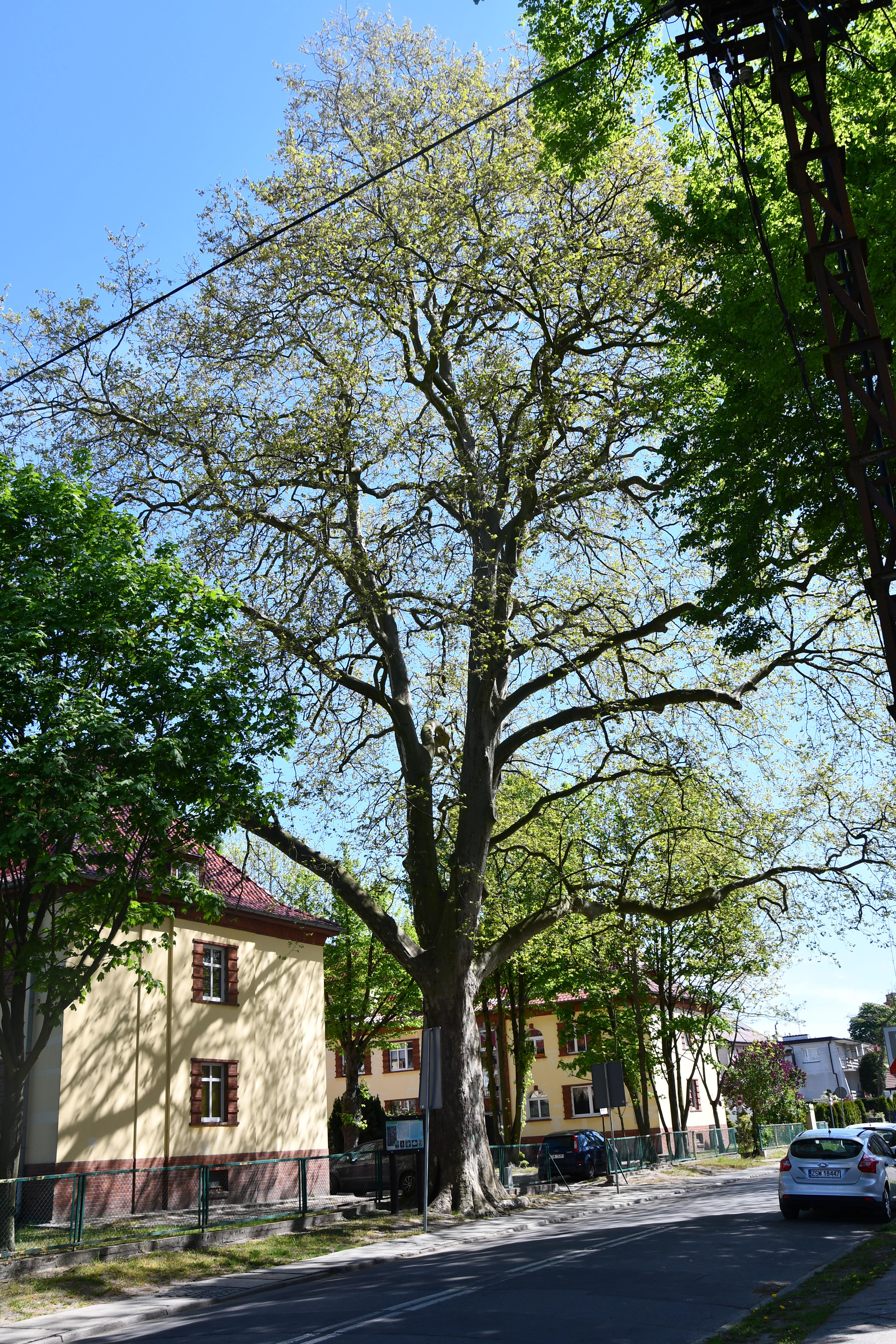 Drugi to platan rosnący tuż przy ulicy Bohaterów Września (róg Jana z Kolna, zdjęcie u góry). Ma ponad 27 metrów wysokości. Oprócz cięć pielęgnacyjnych, przy użyciu tomografu akustycznego zbadano także wnętrze pnia drzewa. Prace wykonała firma Agro Serwice ze Szczecina.