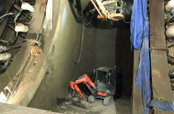 Aby zrobić wyłom w obudowie segmentowej tunelu, wewnątrz tunelu TBM została zamontowana tymczasowa rama stalowa dla wzmocnienia konstrukcji tunelu. Obudowa wstępna wnęki składa się z warstwy betonu natryskowego i stalowych żeber w rozstawie 0,75 m. Obudowa docelowa wykonana będzie z betonu zbrojonego.