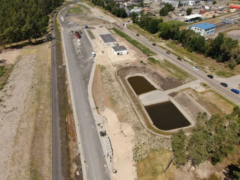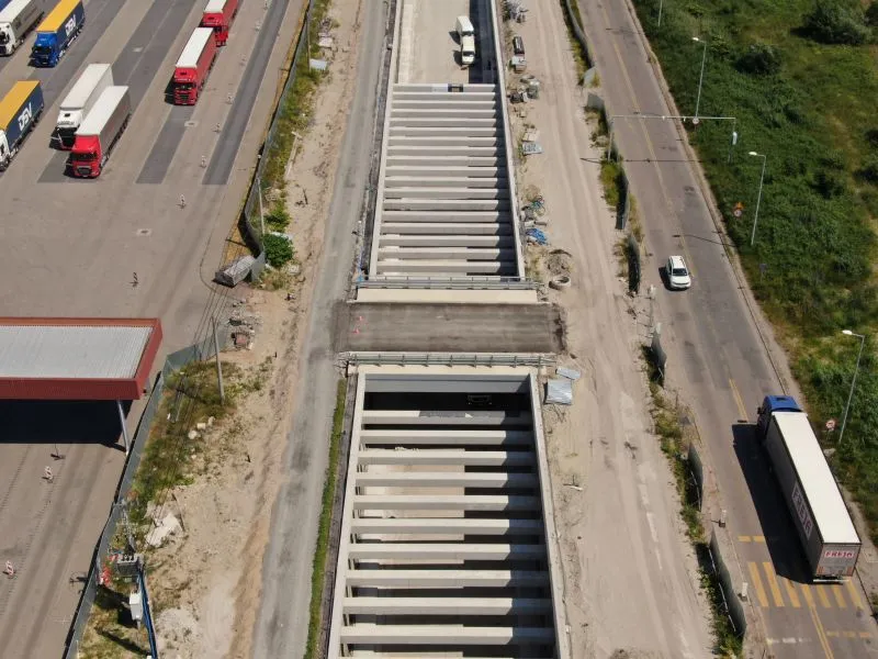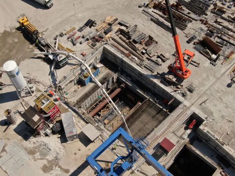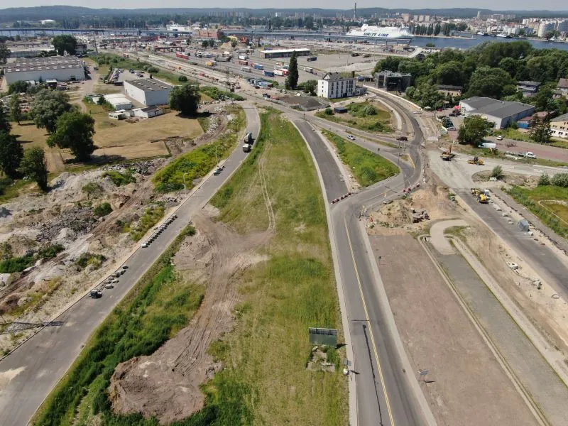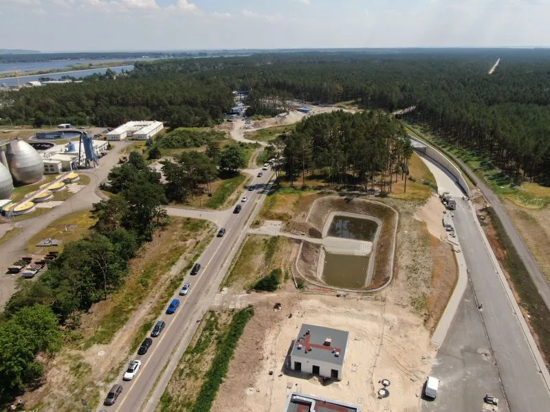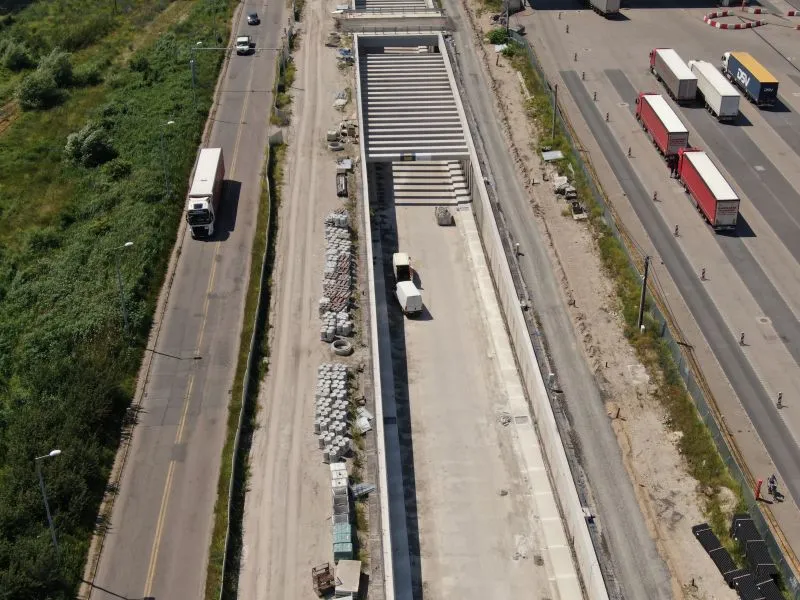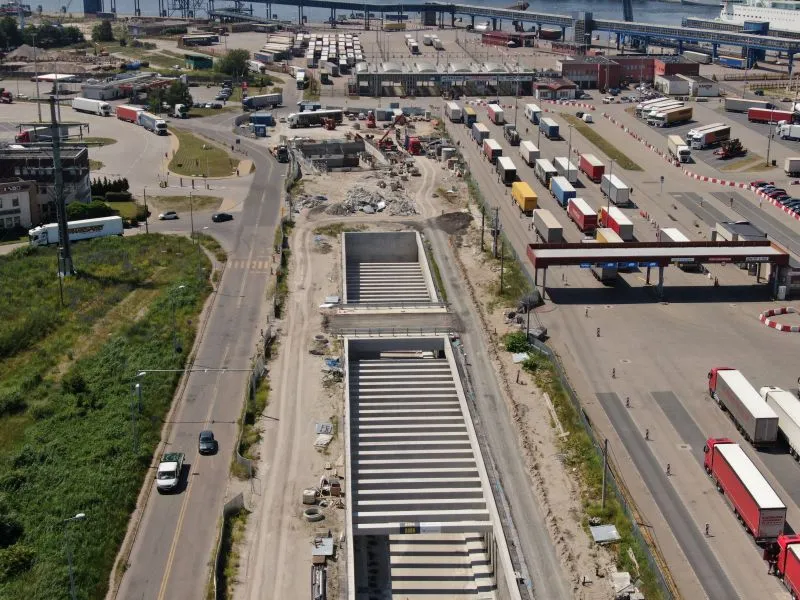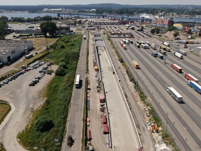 W komorze odbiorczej TBM na wyspie Wolin trwają prace nad konstrukcją wewnętrzną oraz uszczelnianiem ścian szczelinowych. Na rampie i w tunelu wykonywanym metodą stropową betonowano kapy chodnikowe, przygotowywano się do wykonania barier energochłonnych a także uszczelniano całą konstrukcję.