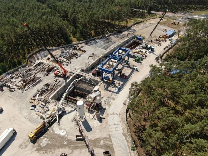 W zeszłym tygodniu na wyspie Uznam zakończono budowę stropu pośredniego od strony zachodniej. Strop zewnętrzny jest teraz deskowany i zbrojony. Zakończyło się także zbrojenie i betonowanie ściany dociskowej.