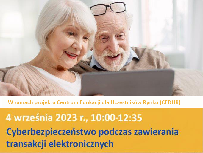 Urząd Komisji Nadzoru Finansowego zaprasza seniorów i ich opiekunów na webinarium (seminarium online) „Cyberbezpieczeństwo podczas zawierania transakcji elektronicznych z podmiotami rynku finansowego, ochrona konsumentów na rynku finansowym, w szczególności przed działalnością cyberprzestępców, uwzględniając takie metody oszustw, jak vishing i spoofing” organizowane w ramach projektu Centrum Edukacji dla Uczestników Rynku – CEDUR, we współpracy z Komendą Główną Policji oraz Ministerstwem Rodziny i Polityki Społecznej.