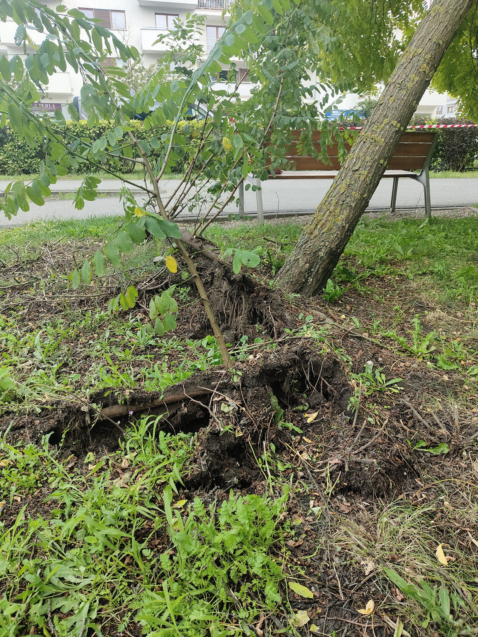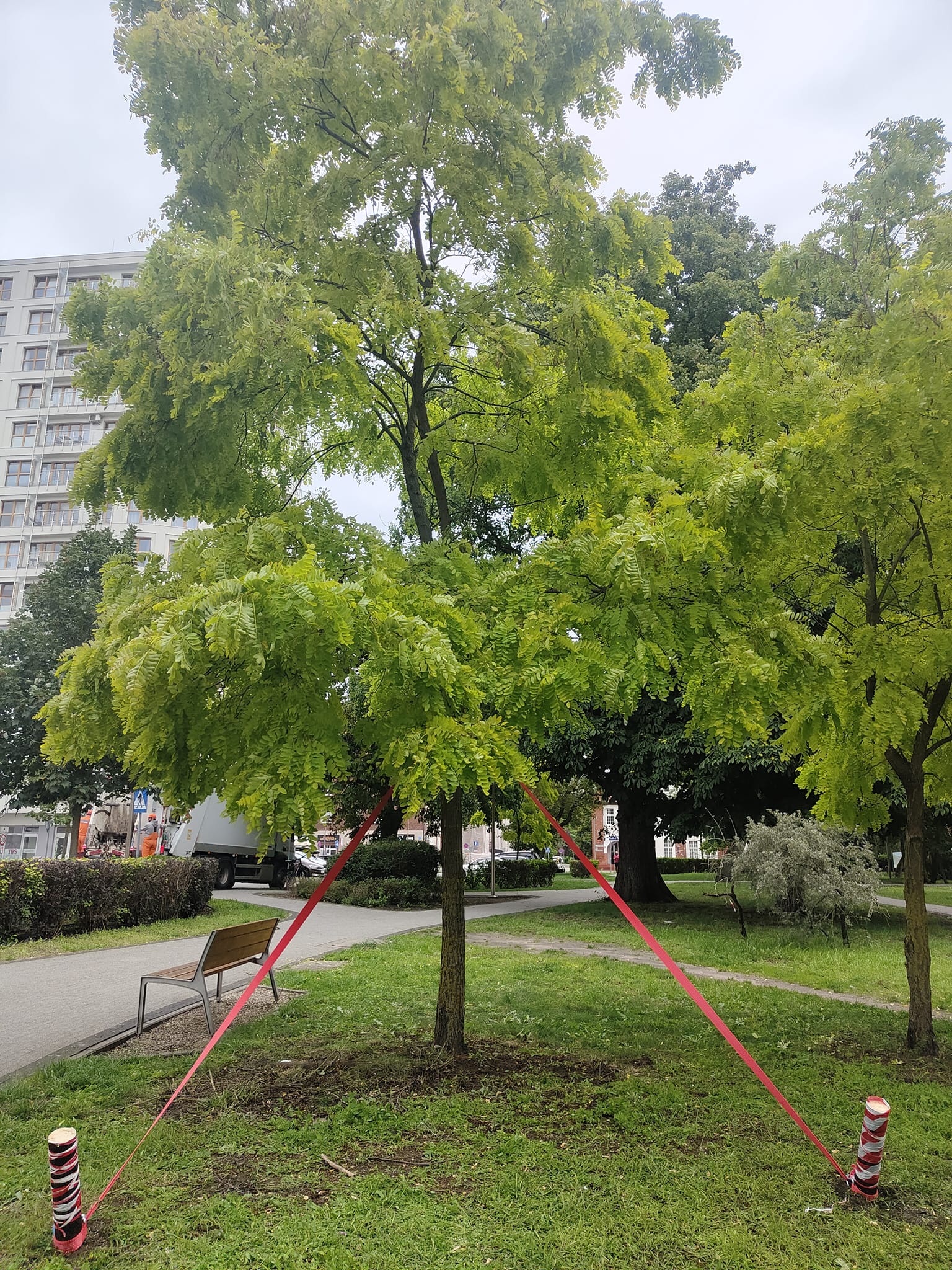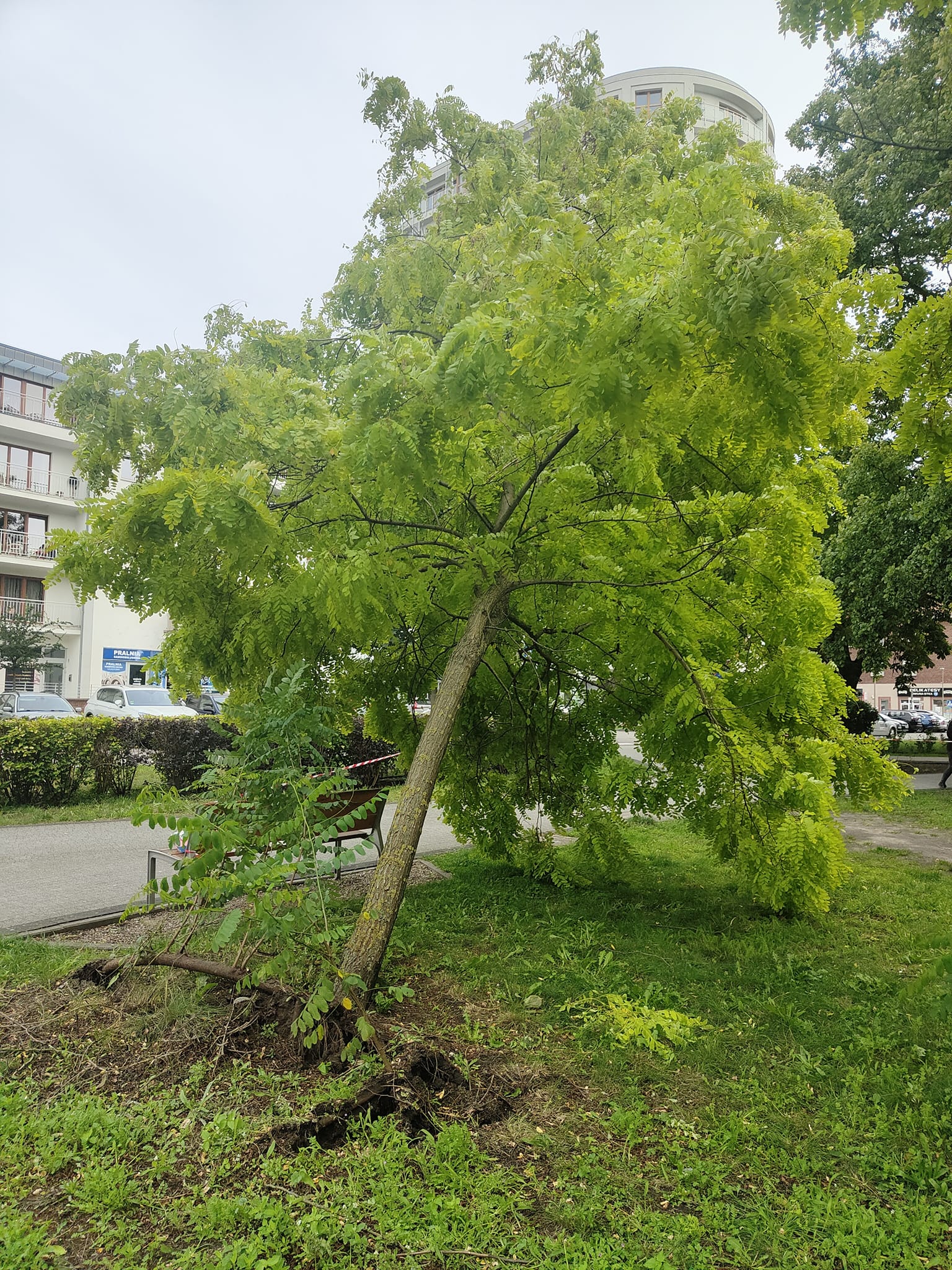 Wiejący ostatnio silny wiatr poważnie uszkodził robinię, która rośnie przy ulicy Malczewskiego. Naderwał jej system korzeniowy. Pracownicy firmy Świnoujście Moim Ogrodem, którzy dbają o znaczną część naszej zieleni w mieście podjęli próbę uratowania tego drzewa.