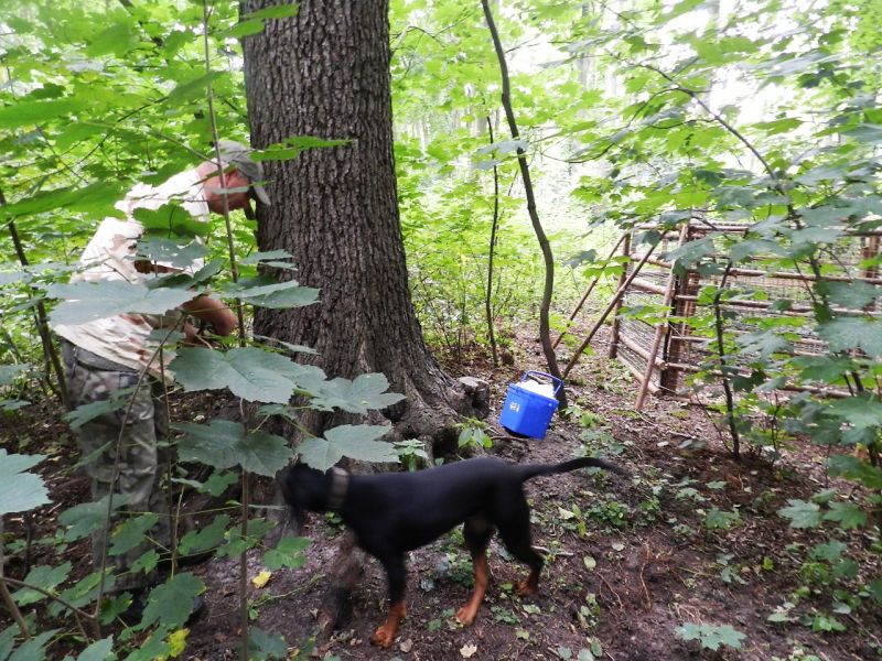 Obserwacja zainstalowanej odłowni wykazała, że dziki przychodzą w to miejsce przede wszystkim między godzinami 22.00 a 23.00.