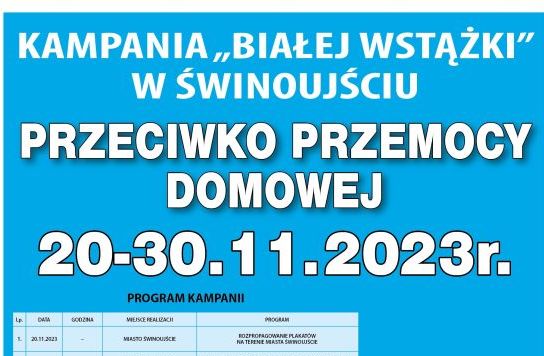 Kampania „Białej Wstążki” to największa na całym świecie akcja mająca na celu zatrzymanie oraz zwrócenie uwagi społeczeństwa na zjawisko przemocy domowej. Serdecznie zapraszamy wszystkich Państwa do wzięcia w niej udziału. Organizowana jest po raz piętnasty w Świnoujściu przez Specjalistyczny Ośrodek Wsparcia dla Osób Doznających Przemocy Domowej działający w strukturach Miejskiego Ośrodka Pomocy Rodzinie w Świnoujściu. Kampania realizowana jest pod hasłem „Lepiej mnie kochaj, niż bij” i przebiegać będzie w dniach od 20 do 30.11.2023 roku.