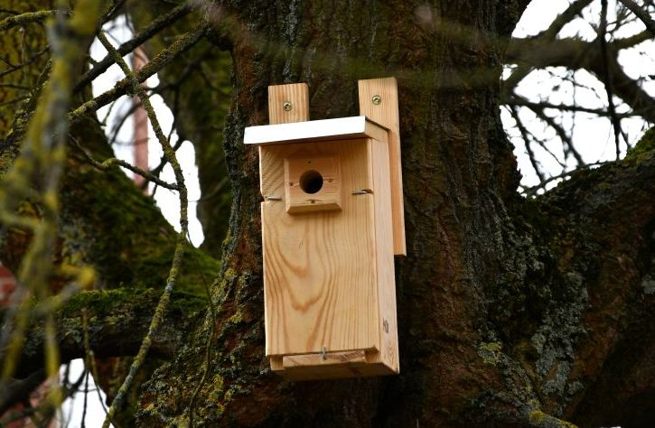 Kolejne sześć już na drzewach dla wróbli, a cztery z dodatkową siatką ochronną to budki lęgowe dla kopciuszka.