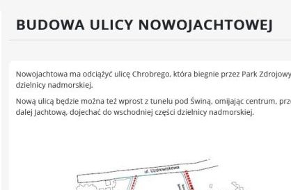 A jak jest naprawdę? Nowojachtowa ma łączyć istniejące już ulice Jachtową i Uzdrowiskową. Dodatkowo powstanie ścieżka rowerowa i chodnik. Zarówno one, jak i nowa droga będą biegły przez tereny zadrzewione POZA GRANICAMI PARKU ZDROJOWEGO. Została zaprojektowana tak, aby chronić cenne drzewa, w tym te tworzące tzw. aleję bukową, ale nie tylko. Poza tym w części nowa ulica przebiegać będzie śladem kiedyś już tam istniejącej drogi, która została zarośnięta przez samosiejki, a nie cenne gatunkowo drzewa.
