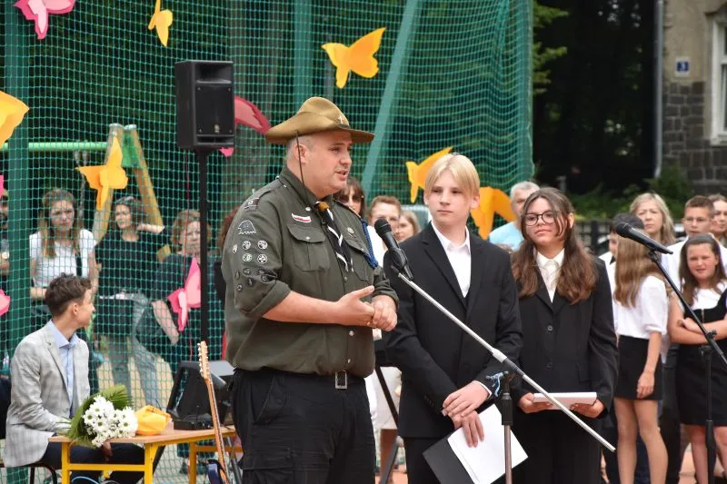 W tym roku miejskie obchody zakończenia roku szkolnego zostały zorganizowane na boisku Szkoły Podstawowej nr 1 w Świnoujściu przy ulicy Narutowicza 10.