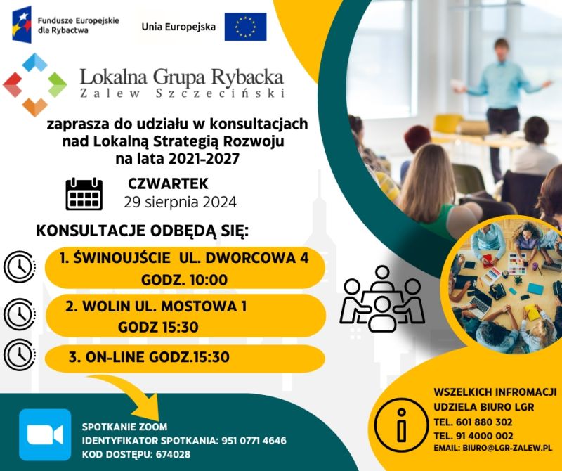 Lokalna Grupa Rybacka Zalew Szczeciński zaprasza do udziału w konsultacjach nad Lokalną Strategią Rozwoju na lata 2021-2027 w czwartek 29 sierpnia o godz. 10.00 przy ulicy Dworcowej 4.