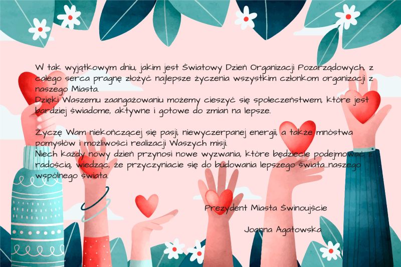 Z okazji Międzynarodowego Dnia Organizacji Pozarządowych Prezydent Miasta Joanna Agatowska składa wszystkim członkom organizacji pozarządowych z naszego miasta najserdeczniejsze życzenia!