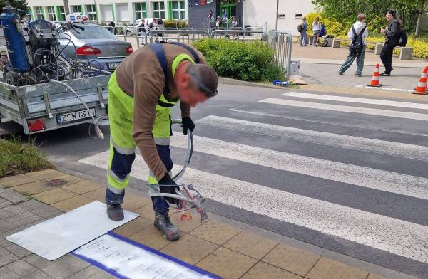„Odłóż telefon i żyj” – trwa malowanie napisów przed przejściami dla pieszych