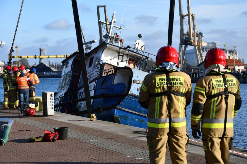 Od wczesnych godzin porannych na miejscu pracowali nurkowie 8. Flotylli Obrony Wybrzeża, strażacy, załoga OSIR „Wyspiarz” oraz zespół firmy dźwigowej. Jednym z kluczowych elementów zaplanowanego scenariusza było przeciągnięcie pod kadłubem masywnych pasów, które następnie połączono z zawiesiem dźwigowym. Precyzyjna praca w trudnych warunkach podwodnych wymagała dużego doświadczenia — wsparcie nurków 8 FOW pozwoliło sprawnie przeprowadzić ten etap.