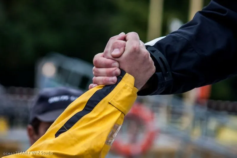 Sztormowy wiatr o sile w porywach do 9B. Duże nierówne fale dochodzące do 4 m wysokości, wodospad wody po pokładzie i bryzgi do wysokości salingów. Zimno i mokro. Tak obaj kapitanowie relacjonują pierwszą dobę na morzu. W tak trudnych warunkach ciężko o sen, nawet ten 15-20 minutowy. Zaczyna doskwierać zmęczenie, grabieją ręce. Ryk morza za burtą.