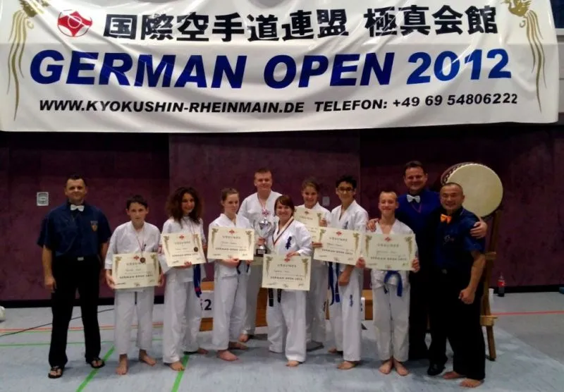 W miniony weekend, odbyły się Otwarte Mistrzostwa Niemiec GERMAN OPEN 2012, których organizatorem był Klub Karate Kyokushin z Frankfurtu n/Menem. W zawodach wzięło udział 196 zawodników, z 36 ośrodków z 13 krajów. Na tatami występowali zawodnicy z Niemiec, Francji, Rosji, Czech, Węgier, Austrii, Holandii, Słowacji, Izraela, Chorwacji, Belgi, Słowenii  i Polski. Zawodnicy rywalizowali ze sobą w konkurencjach kumite wg wieku i wagi oraz w konkurencji kata. Polskę reprezentowali zawodnicy ze Świnoujskiej Akademii Karate Kyokushin oraz z Wrocławskiego i Siemianowskiego Klubu karate Kyokushin i, sensei Paweł Sujka wystawił ośmioosobową  drużynę ze Świnoujścia, która bardzo dobrze wywiązała się z reprezentowania kraju i klubu na Otwartych Mistrzostwach Niemiec zdobywając 1 złoty oraz trzy brązowe medale.