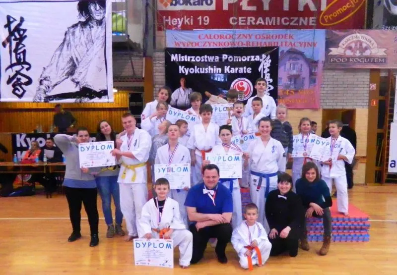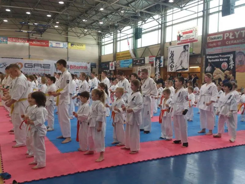 W ubiegłą sobotę na Hali Miejskiej przy ul. Twardowskiego w Szczecinie rozegrane zostały Mistrzostwa Pomorza Kyokushin Karate, którego organizatorem był Szczeciński Klub Sportowy HUSARIA. Mistrzostwa otworzył w imieniu Dyrektora Wydziału Sportu Miara Szczecin, Pan Łukasz Wybraniec. Sędzią głównym zawodów był Prezes Okręgowego Zachodniopomorskiego Związku Karate, sensei Andrzej KŁUJSZO. Do Szczecina zjechały drużyny z województwa zachodniopomorskiego Świnoujścia, Złocieńca, Reska, Mielna, Kołobrzegu, Koszalina, Drawska Pomorskiego, Białogardu, Morynia, Ustki, Tymienia i Postomina. Łącznie w rywalizacji udział wzięło 311 zawodników. Świnoujścianie zdobyli 10 medali w tym: 1 złoty, 3 srebrne i 6 brązowych!!! Największa ilość zawodników była w konkurencji kumite chłopców 8 lat – 36 osób oraz kumite bez kontaktu chłopców do 6 lat – 37 osób. Najbardziej cieszy fakt ze kolejne pokolenie najmłodszych karateka zaczyna zdobywać medale dla naszego miasta!!!