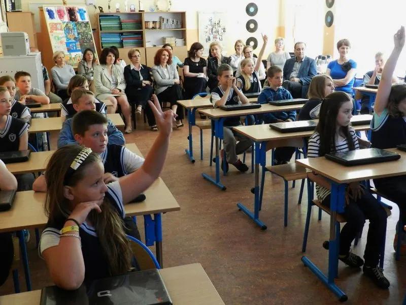 - Kupiliśmy 52 przenośne komputery dla uczniów i dwa dla nauczycieli – wylicza Hanna Kubacka, dyrektorka SP nr 6. – Wszystkie wyposażone są w system operacyjny, oprogramowanie antywirusowe oraz zabezpieczające komputer w przypadku kradzieży. Oprócz tego dwa urządzenia wielofunkcyjne (drukarka, skaner), system do zbierania i analizowania odpowiedzi, dwa projektory, dwa komplety głośników, dwa ekrany projekcyjne, wizualizer oraz dwie szafki do przechowywania i bezpiecznego przemieszczania przenośnych komputerów z funkcją ładowania baterii.