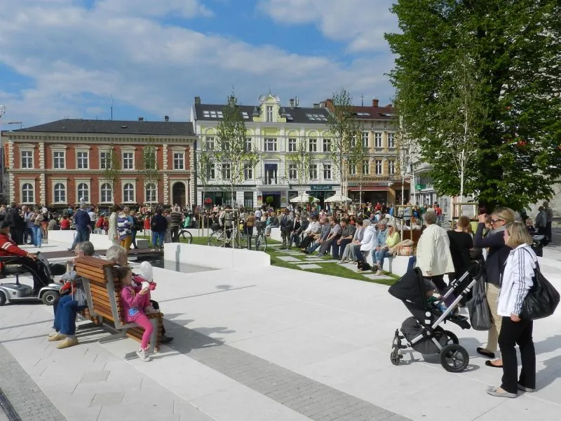 Dzięki przebudowie teren placu Wolności zyskał nowe oblicze jako miejsce wypoczynku i rekreacji. Powstała fontanna, strumyk, ławki i inne elementy małej architektury, nasadzono nową zieleń.