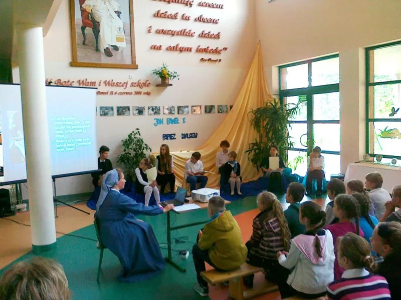 Spotkanie zaczęło się od krótkiego programu okolicznościowego o życiu Karola Wojtyły i późniejszego papieża Jana Pawła II. Przygotowali go uczniowie SP nr 9 pod kierunkiem katechetki siostry Katarzyny Bayer, która też czuwała nad przebiegiem zjazdu. Po części oficjalnej dzieci i młodzież wzięli udział w marszu na orientację, a dyrektor Wydziału Wychowania Katolickiego Archidiecezji ks.kan.mgr lic. Piotr Superlak poprowadził robocze spotkanie dla kadry pedagogicznej.