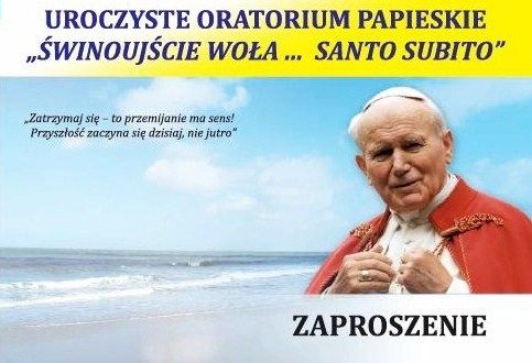 W najbliższą niedzielę (23 czerwca 2013) po mszy świętej rozpoczynającej się o godz. 19.00, w kościele p.w. Chrystusa Króla na placu Kościelnym 1 odbędzie się uroczyste wykonanie Oratorium Papieskiego „Świnoujście woła… Santo Subito”. Wystąpią artyści scen operowych i teatrów dramatycznych oraz Kwartet Smyczkowy Filharmonii Opolskiej. Wstęp wolny.