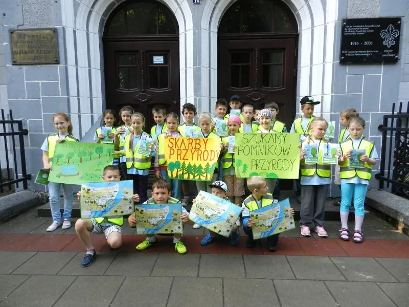 Na zdjeciu: Uczniowie SP nr 1 wyruszyli sprzed swojej szkoły szukać świnoujskich Pomników Przyrody. Ty możesz wyruszyć sprzed swojego domu.