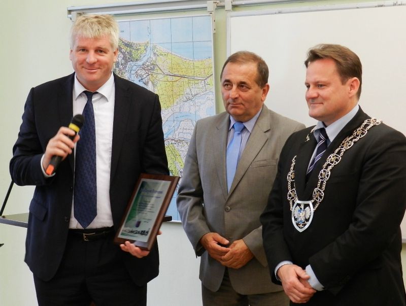 Na pamiątkę tego ważnego wydarzenia Burmistrz Lars Petersen, który nie ukrywał wzruszenia tak ciepłym przyjęciem, otrzymał z rąk przewodniczącego Rady Miasta i Prezydenta Świnoujścia pamiątkowy grawerton.