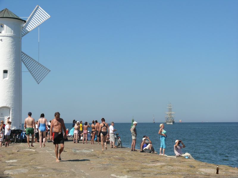Od wczoraj na plaży w okolicy Wiatraka i na falochronie zachodnim zbierają się osoby, które z aparatami oczekują na przepływające przez Świnoujście żaglowce podążające na The Tall Ships’ Races 2013 do Szczecina.