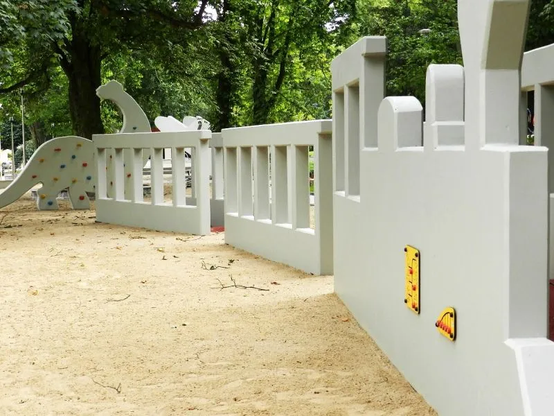 W przebudowanym parku jest plac zabaw dla dzieci z figurami przypominających wyglądem dinozaura, samochód, samolot, konia, rakietę, pociąg , poza tym terenowa siłownia, pole do gry w boule oraz szachy, stok saneczkowy, publiczna toaleta, liczne elementy małej infrastruktury, jak: ławki i oryginalne miejsca do wypoczynku tzw. siedziska terenowe, altany parkowe, zewnętrzna galeria, ścieżka dydaktyczna, stojaki na rowery, powstał też budynek z częścią administracyjną do obsługi parku oraz salą do zajęć dydaktycznych i ścianą przygotowaną do projekcji filmowych.