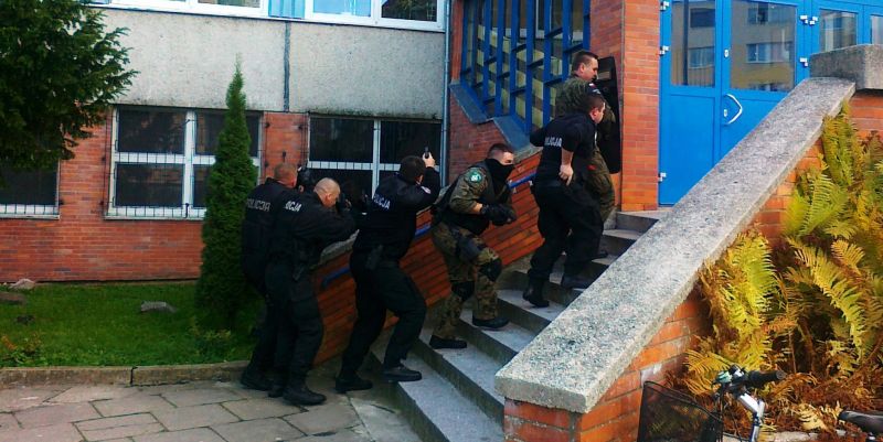 Szkolenie objęło nie tylko wiedzę teoretyczną, ale również jej zastosowanie w praktyce. W jednym ze świnoujskich gimnazjów przeprowadzono symulowany atak na szkołę. Były strzały, byli zakładnicy i odbijający ich funkcjonariusze świnoujskiej policji, straży granicznej, a nawet żandarmerii. W sprawnej akcji ewakuacji kolejno uwalnianych zakładników uczestniczyła z kolei Straż Miejska.